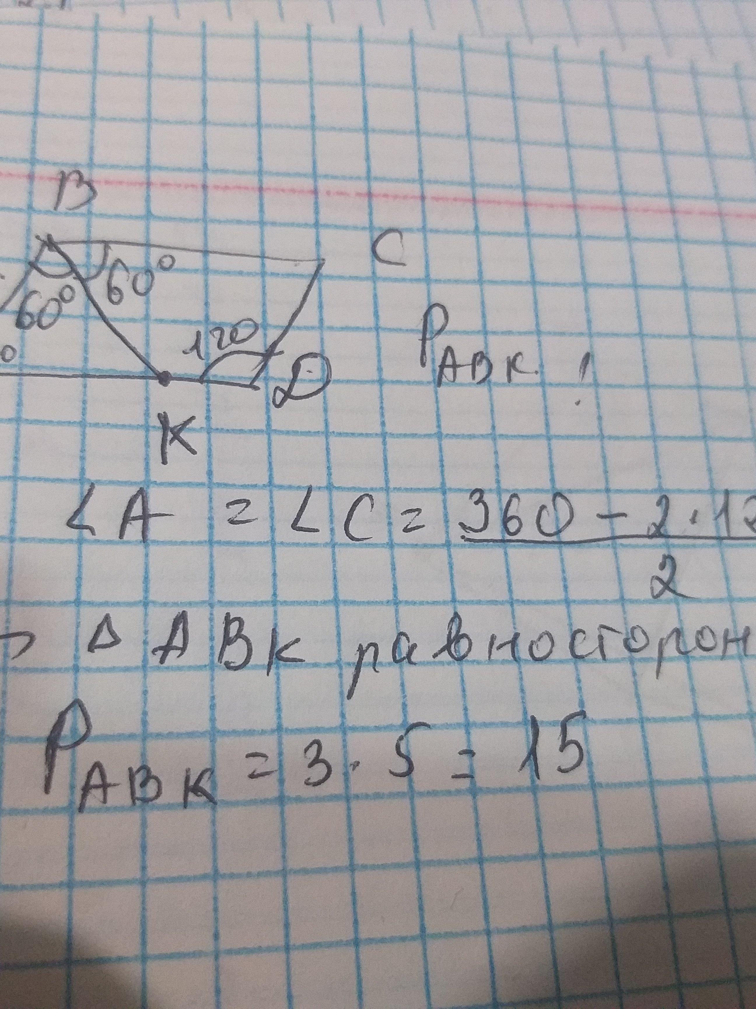 ∆АВК- равносторонний треугольник (все углы по 60°)