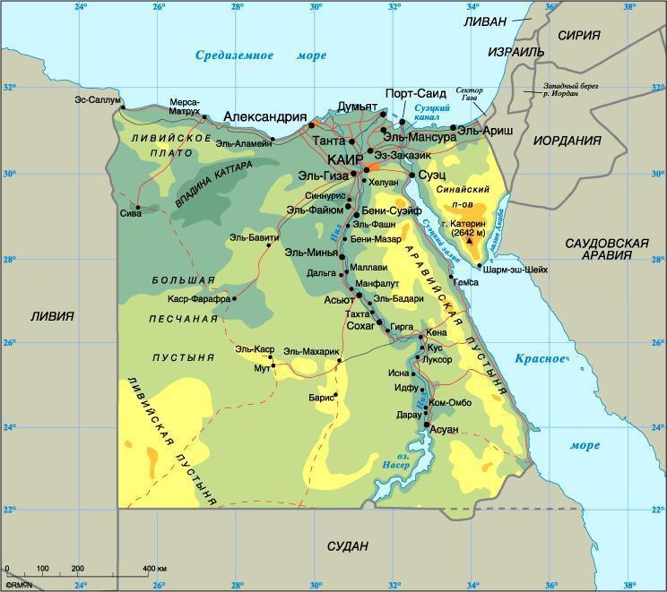2. Особенности рельефа (общий характер поверхности, основные формы рельефа, преобладающие и максимальные высоты) , полезные ископаемые.Рельеф страны довольно разнообразный.На востоке расположен Синайский полуостров с самой высокой точкой страны горой Катерин (2642 м).На востоке и северо-востоке есть небольшие горы (Синайские и горы Этбай).На севере страны расположена низменность в которой находится дельта самой большой реки материка Нил.Западнее от Нила расположена впадина Каттара (-133 м).