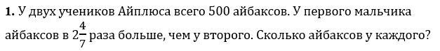 1-ый мальчик (2 4/7х) = 2 4/7 * 140 = 18/7 * 140 = 18*20 / 1 = 360/1 = 360 айбакса