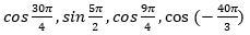 cos (30π/4) = cos (30·180°/4) = cos 1350° = cos (270°+360°·3) = cos 270° = 0