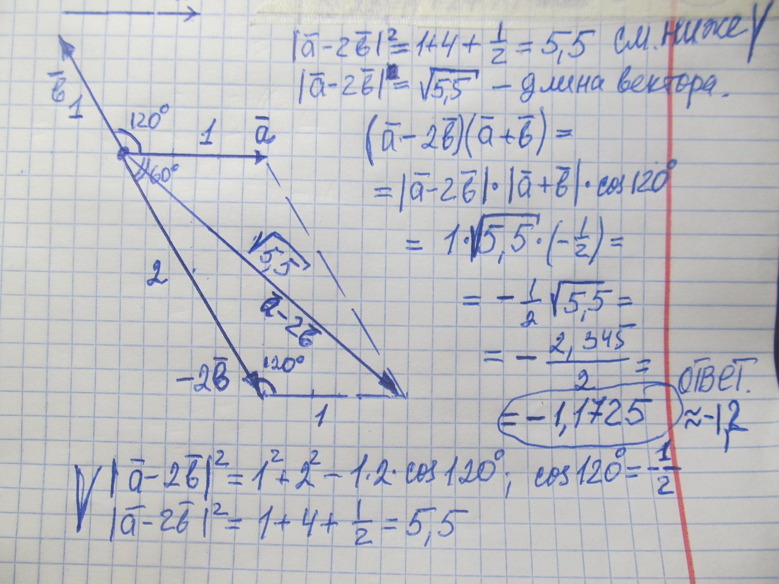 (а-2b)(a+b)= Ia-2bI*Ia+bI*cos120°.