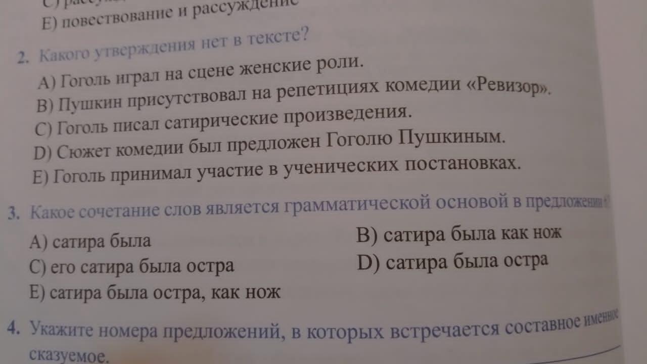 2. В: Пушкин присутствовал на репетициях комедии «Ревизор».
