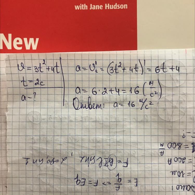 Скорость движения частицы изменяется со временем по закону v = 3t2 + 4t. Ускорение частицы в момент времени t = 2 c равно?