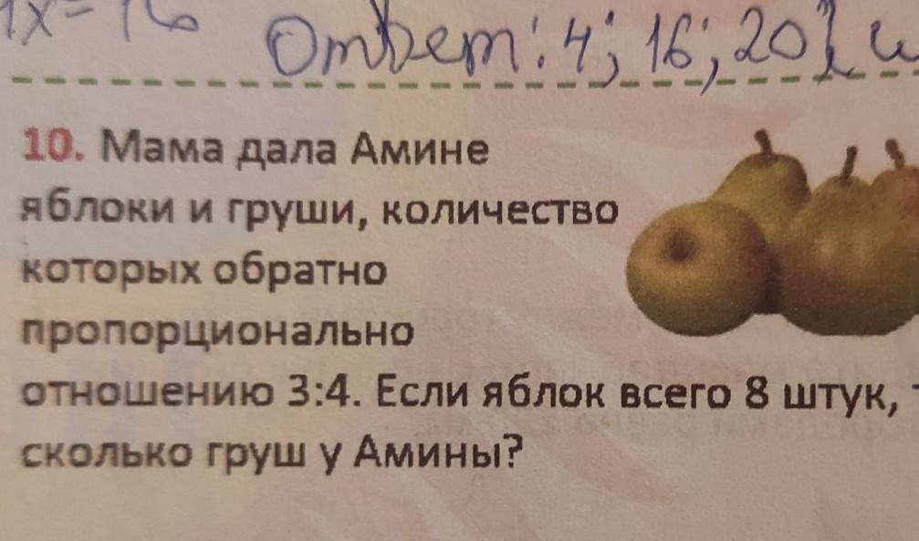 отношению 3:4. Если яблок всего 8 штук, тогд