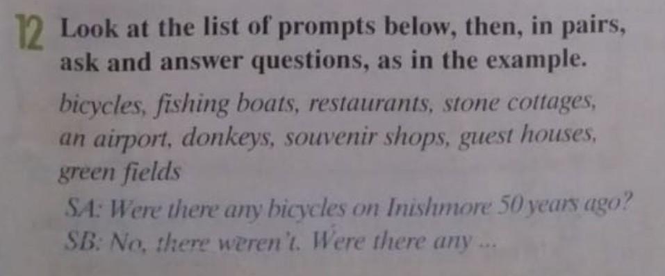 Look at the list of prompts belowthen in pairs ask and answer questions as in the example