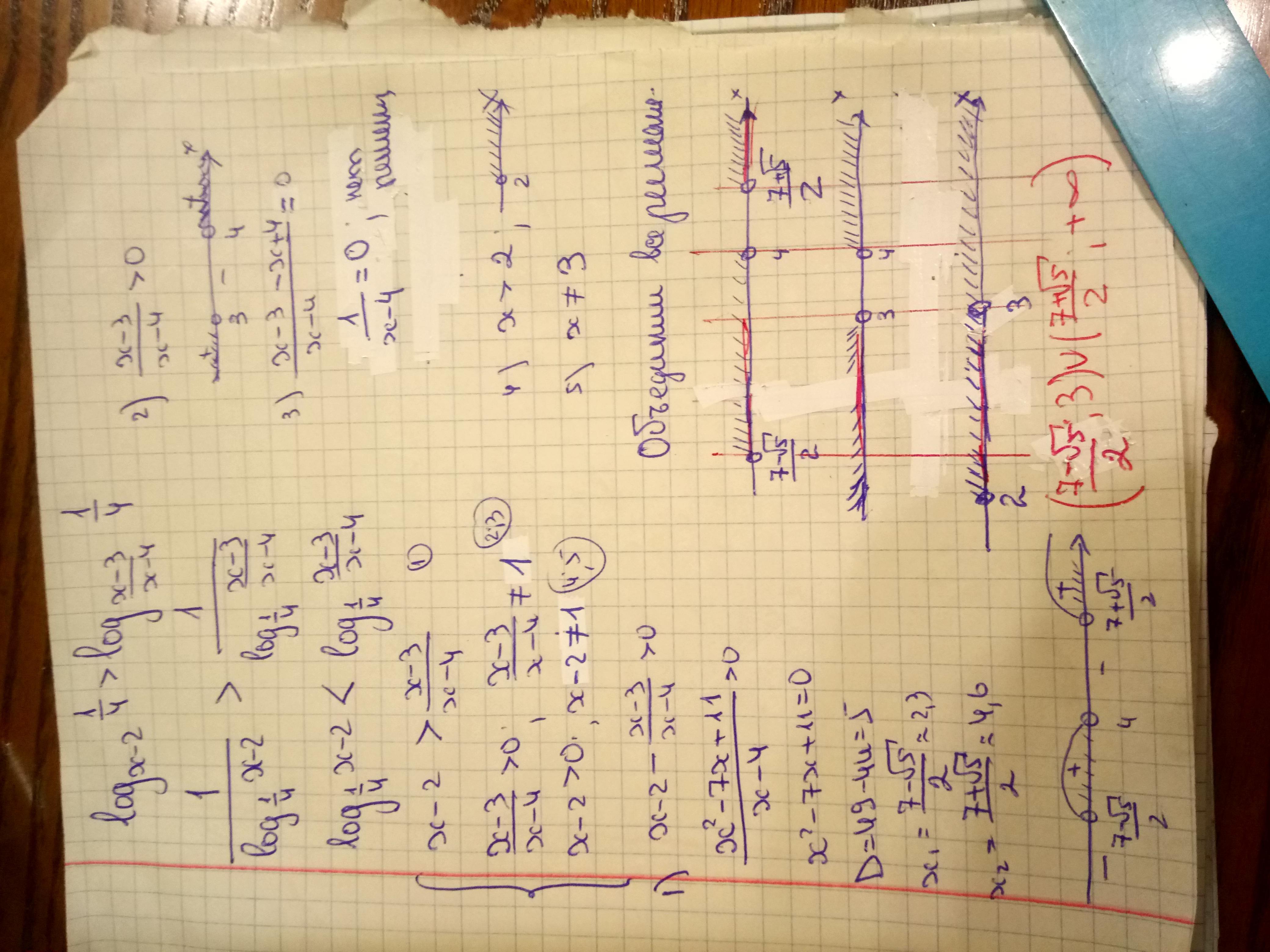 Запись второго логарифма не понятна. Х, потом дробь, потом 1/4. Уточните