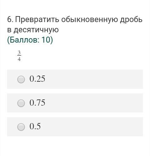 Мы получили 75/100,то есть десятичную дробь 0,75