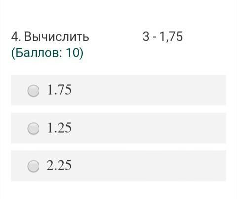 3 - 1,75 = 3,00 - 1,75 = 1,25.