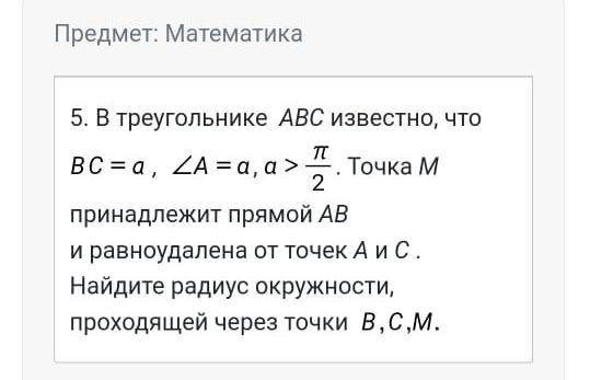 Нужно найти радиус окружности проходящей через точки B, C, M.