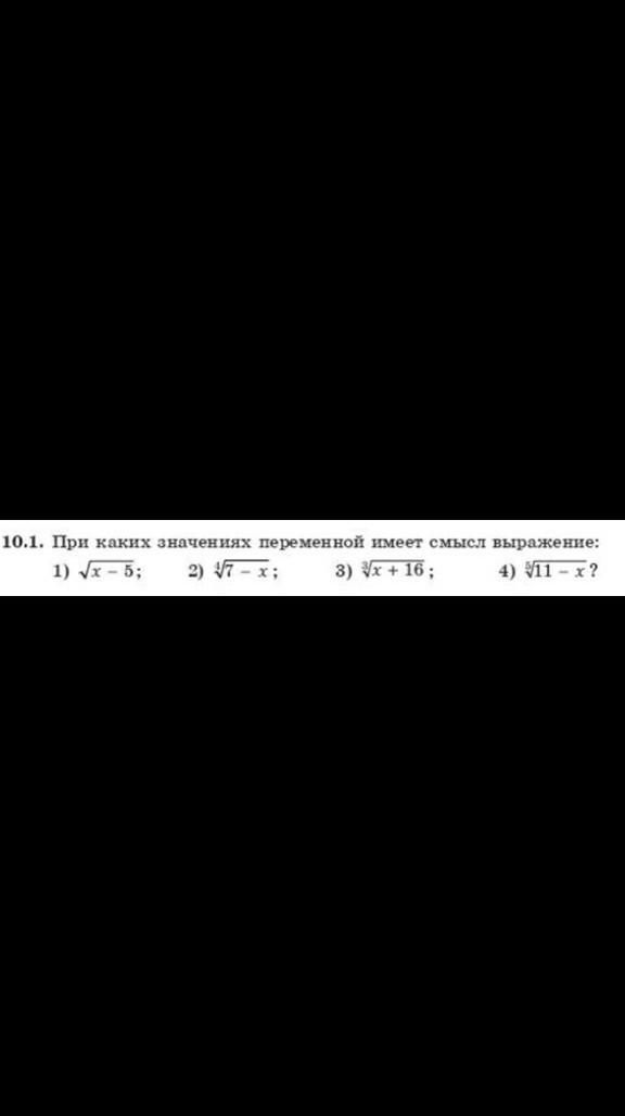 Подкоренное выражение может быть больше или равно нулю, а если корень нечетной степени, то подкоренное выражение может быть любым