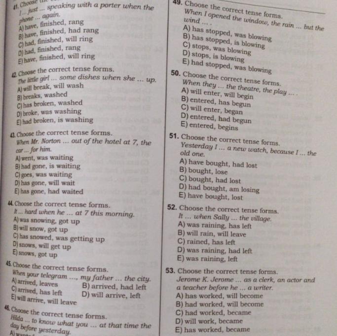 41D, 42D, 43А, 44А, 45В, 46 wanted... had been doing, 49E, 50D, 51C, 52E, 53C