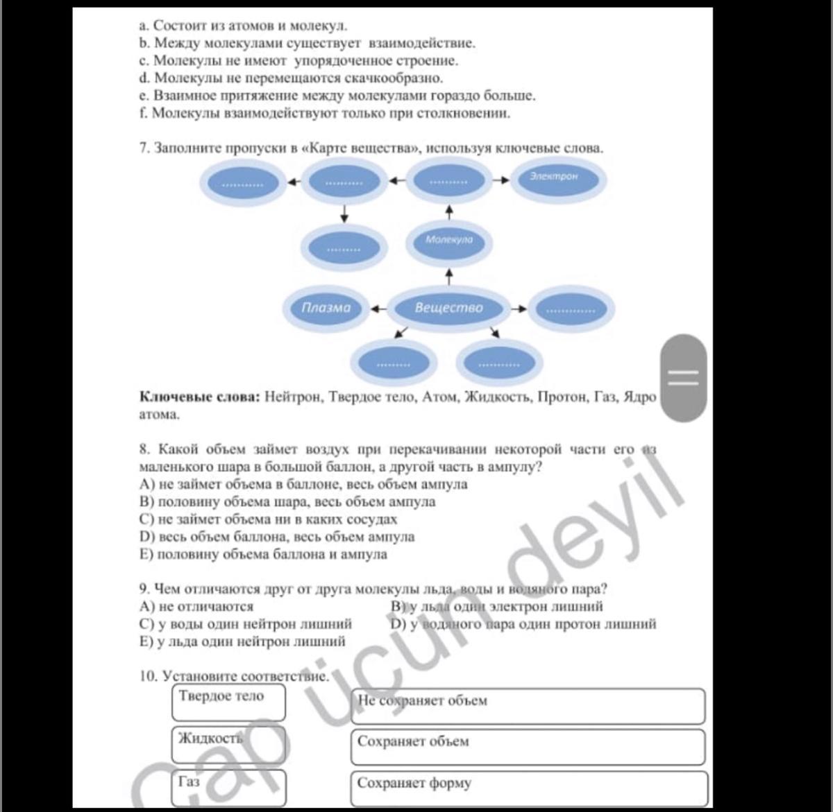 Объяснение: вещество делится на 4 агрегатных состояний, плазма газ, тв.тело, жидкость. Вещество состоит из молекул, молекулы из атомов, атом состоит из электрона и ядра ядро состоит из протонав и нейтронов.