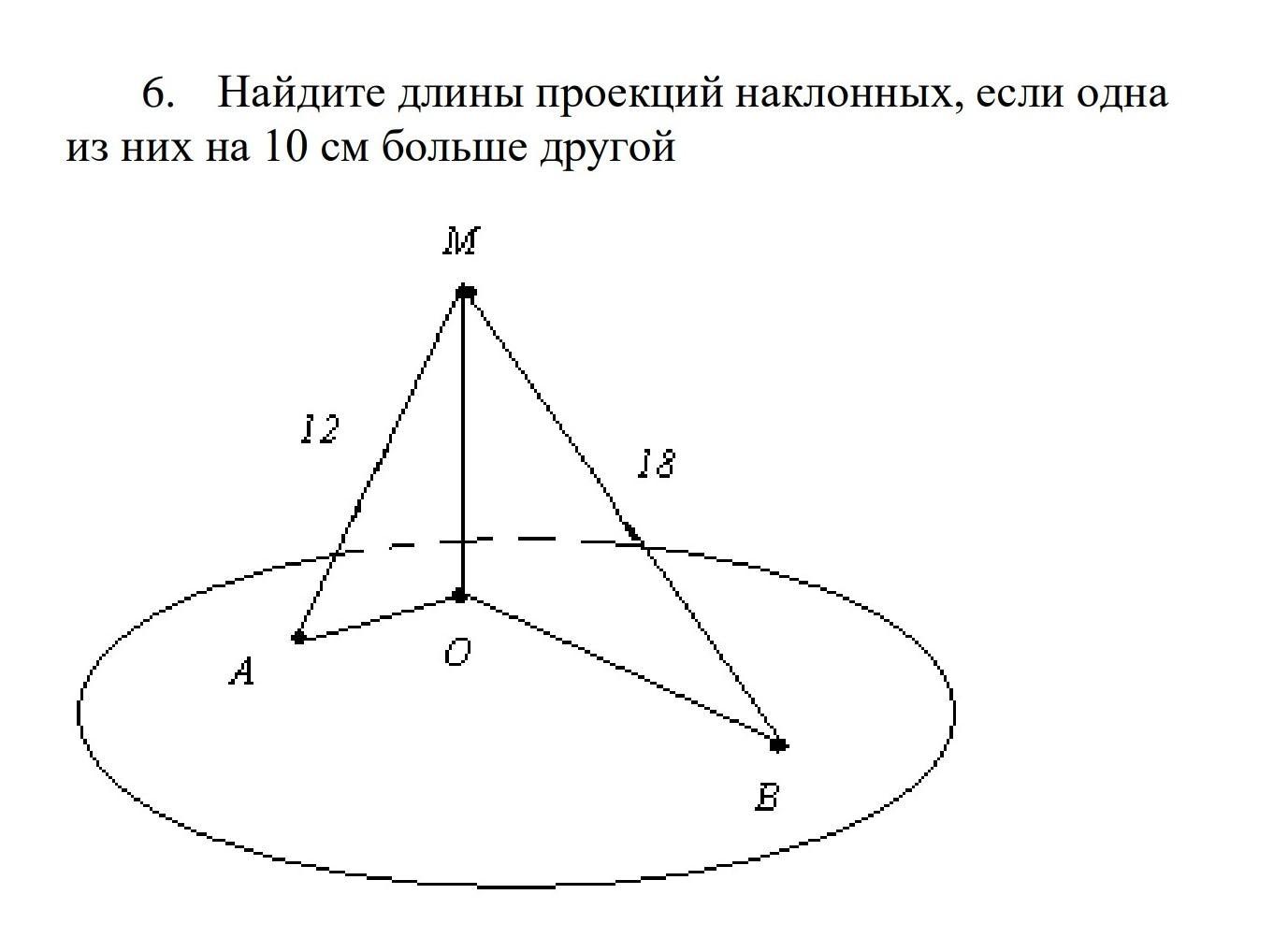 Наклонные АМ и ВМ; ОМ ⊥ плоскости ⇒ АО и ВО - проекции наклонных.