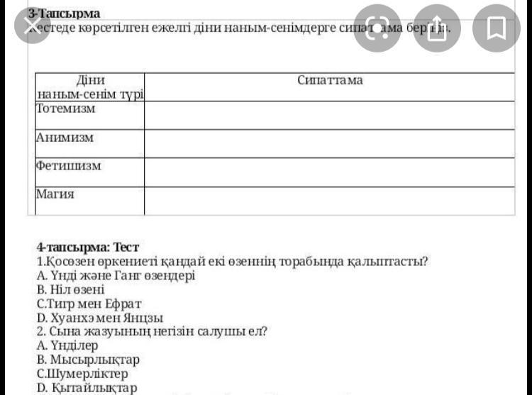 анимизм-аруақтар мен рухтарға сену. қоршаған ортадағы әр нәрсенің жаны бар деп ойлау.