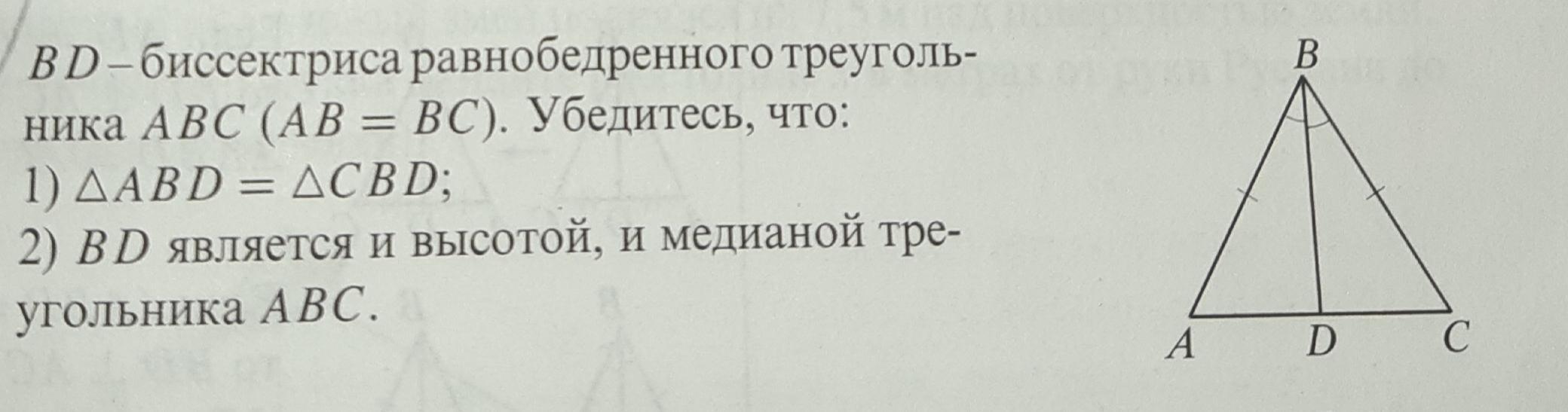 2) из первого делаем вывод, раз эти треугольники равны, то AD=DC, значит BD это ещё и медиана