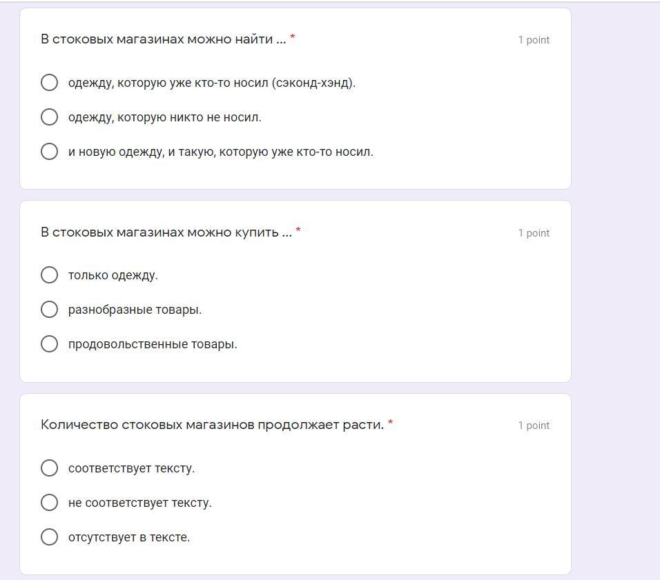 1)В стоковых магазинах можно найти одежду, которую никто не носил (2).