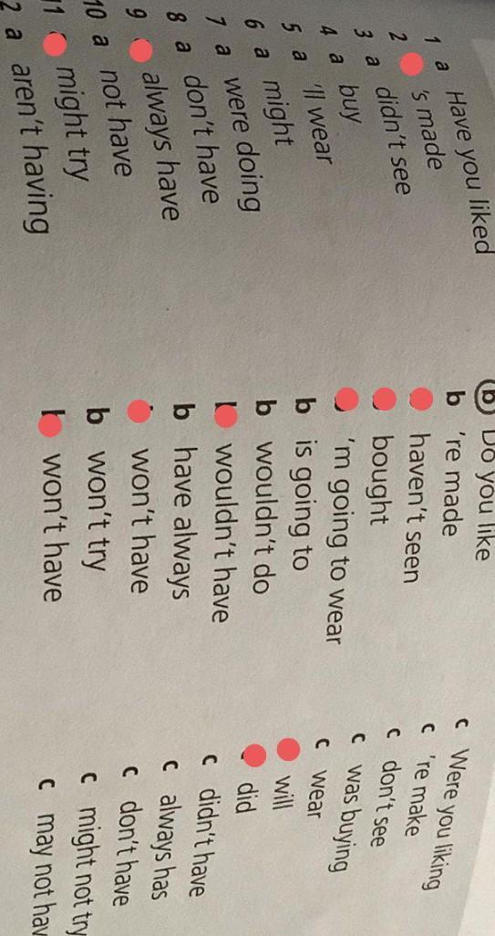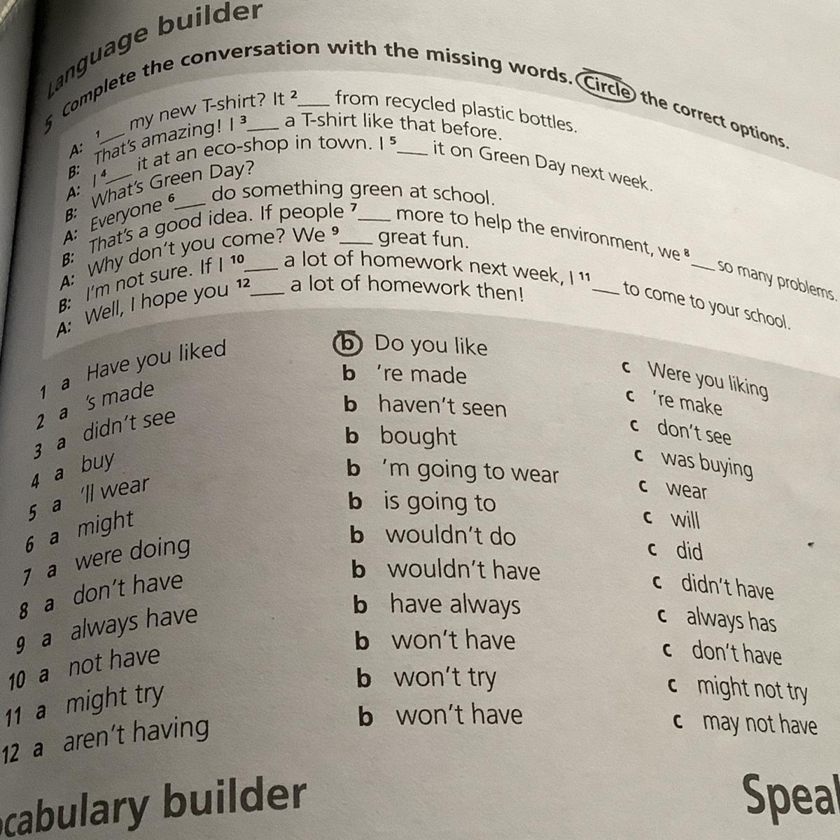 СРОЧНО! Complete the conversation with the missing words. Circle the correct options