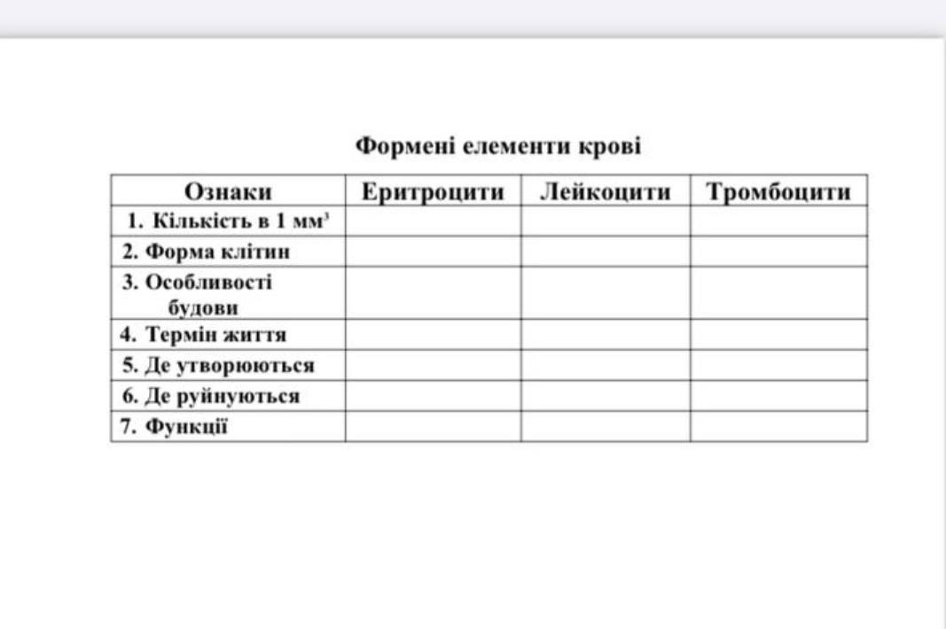 7. Основна мета червоних кров'яних тілець - забезпечувати нормальне постачання киснем тканин і органів.
