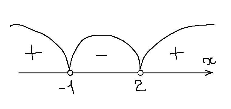 Получаем,что выражение отрицательное на отрезке от -1 до 2