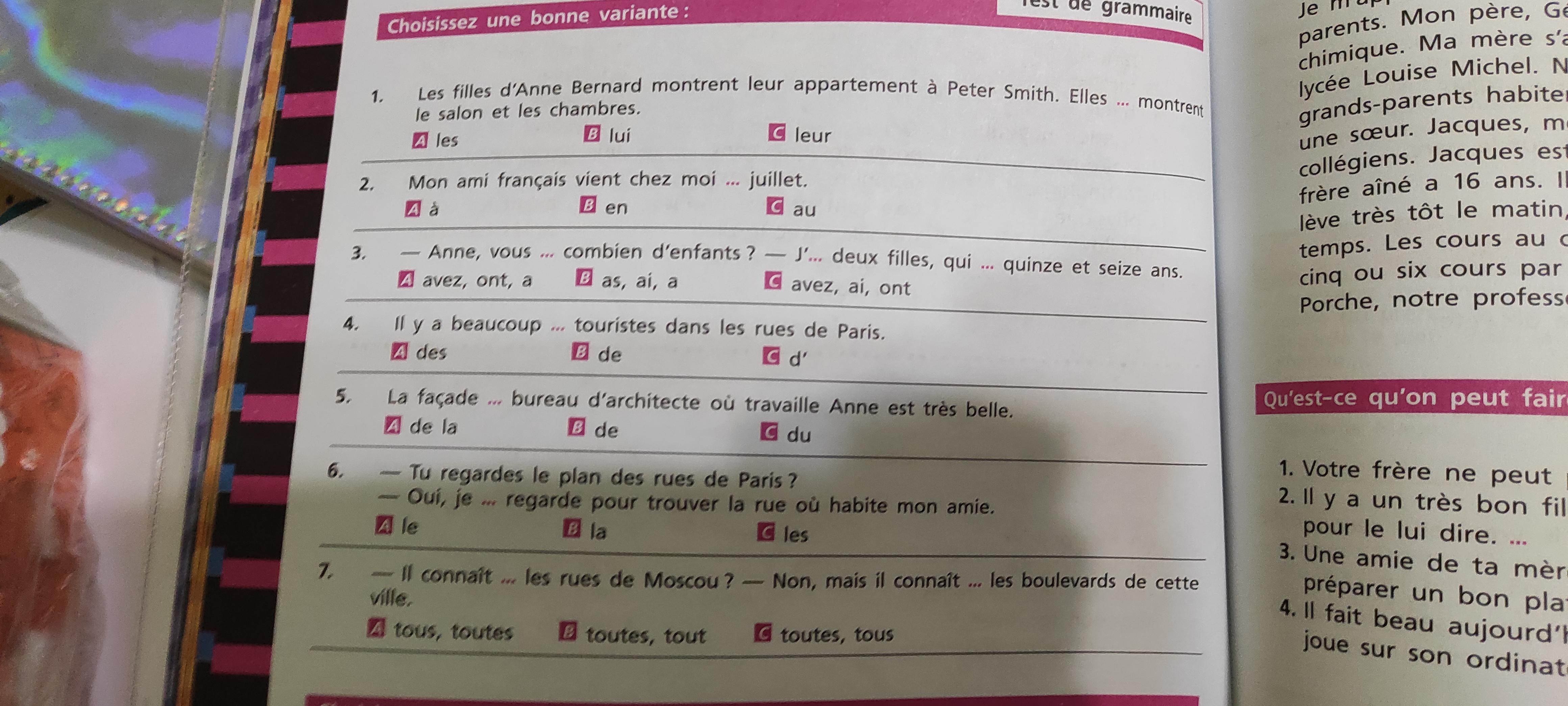 1. Les filles d'Anne Bernard montrent leur appartement à Peter Smith. Elles lui montrent le salon et les chambres. (lui - ему, ей. Они ему (Питеру) показывают).