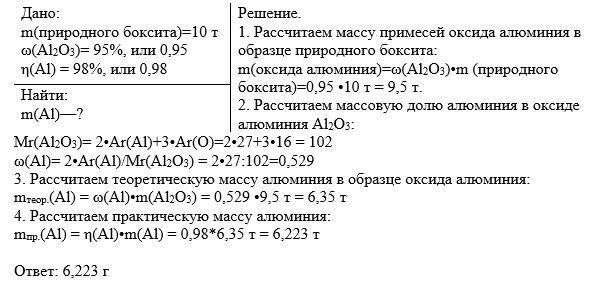 Какую массу алюминия можно получить из боксита массой 10 т. Массовая доля оксида алюминия в котором равна 95%. если массовая доля выхода алюминия составляет 98% от теоретически возможного.