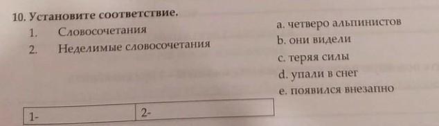 2. Неделимые словосочетания: четверо альпинистов, теряя силы, появился внезапно