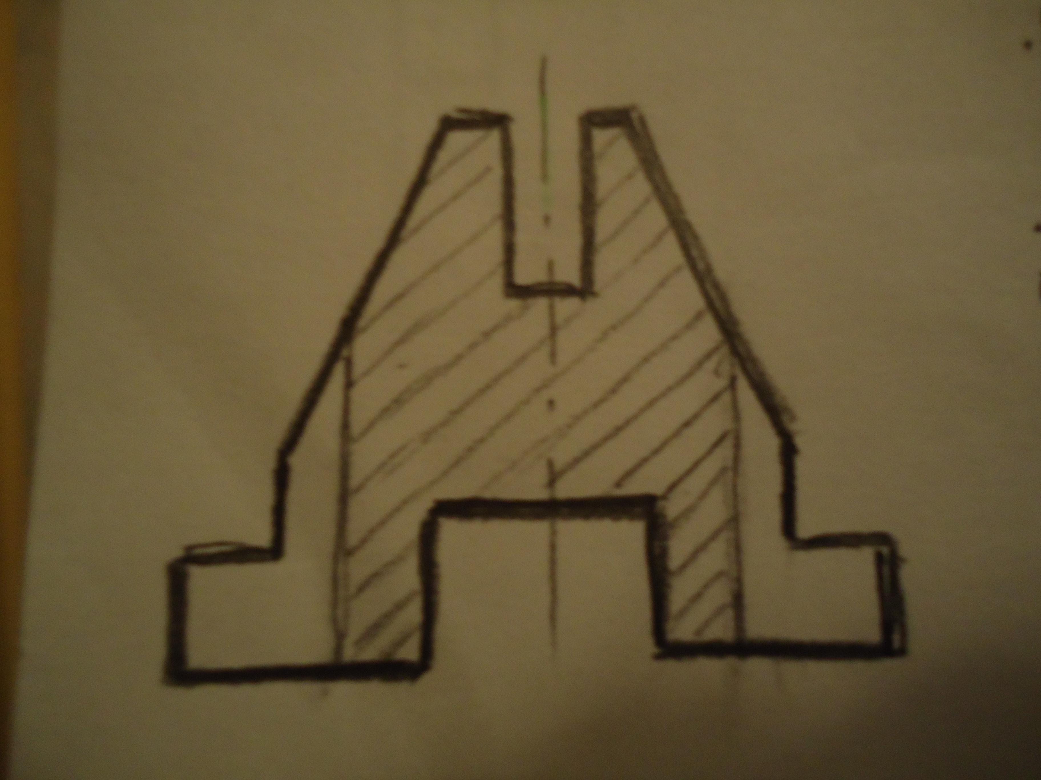 См. наложенное сечение на фото. Оно выполнено от руки. Обратите внимание, что вертикальные линии внутри контура чертежа должны быть выполнены тонкой сплошной линией, т.к. это наложенное сечение , а не разрез.