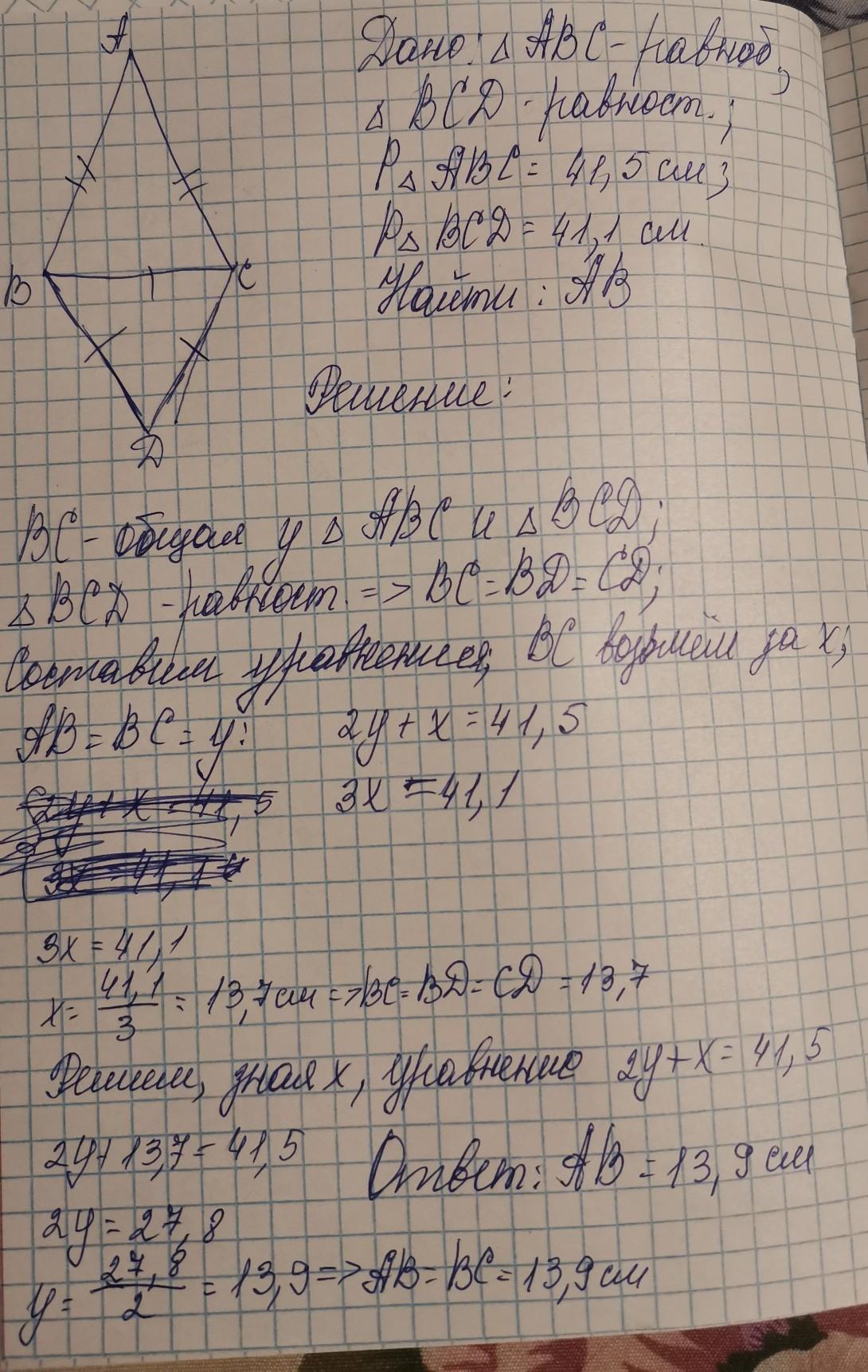 пусть х - стороны АВ и АС, у - стороны ВС, СД, ВД.