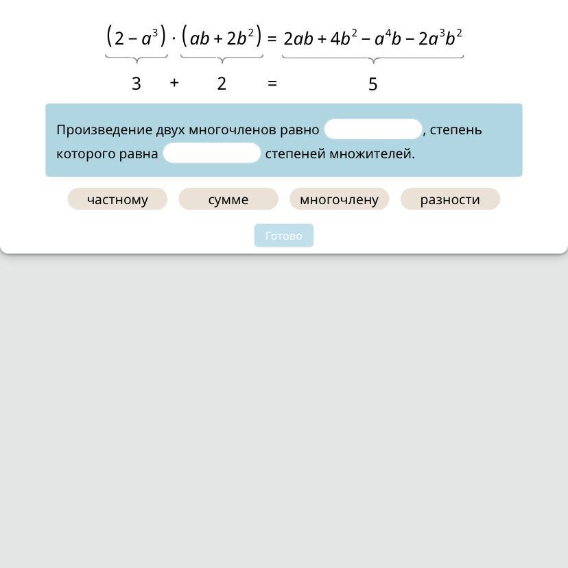 произведение двух многочленов равно многочлену степень которого равна сумме степеней множителей