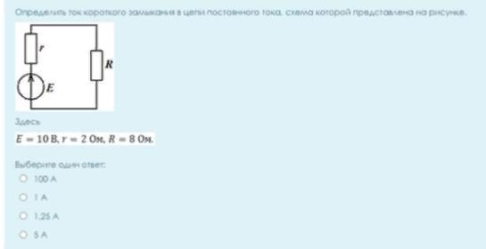 Если вопрос короткого замыкания подразумевает отсутствие резистора R, то I=10/2=5 Ампер.