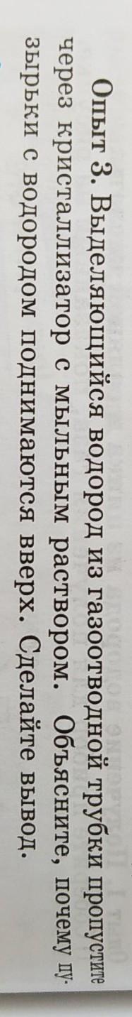 Вывод:При заполнении водорода мыльным раствором он поднимается верх.Потому что водород это лёгкий газ он будет подниматься верх с мыльными пузырьями
