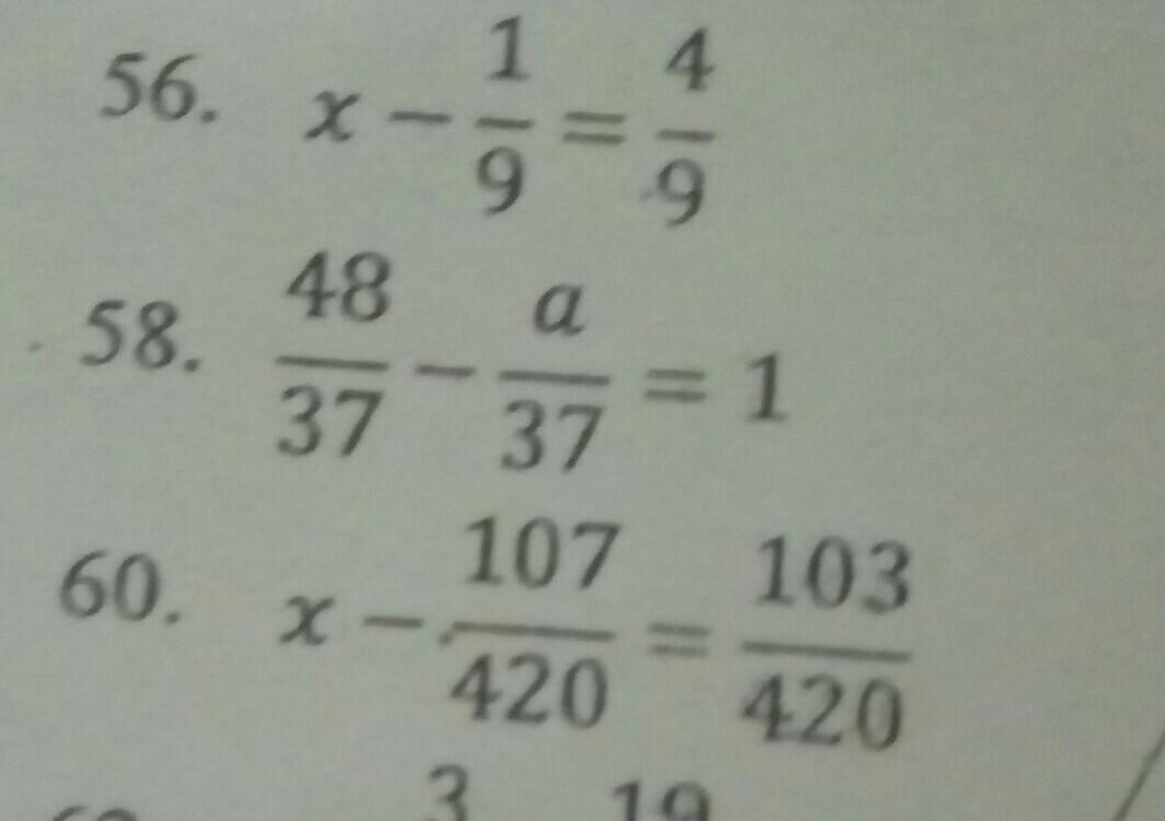 1) x - 1/9(+1/9) = 4/9(+1/9)