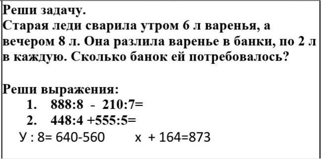 2) 14:2=7 (банок)- понадобилось старой леди.\