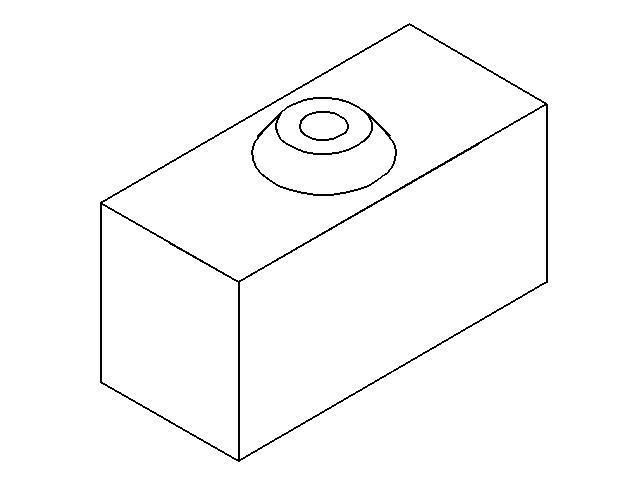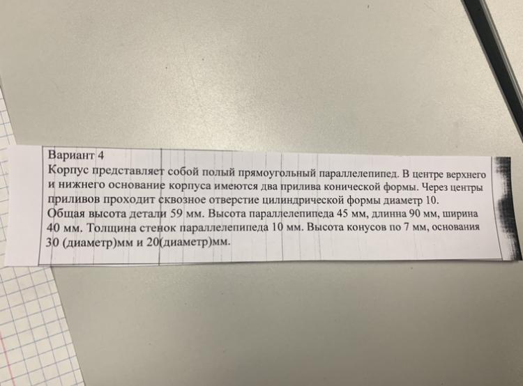 см. на фото. Оно выполнялось в масштабе 1:2. Показаны невидимые линии, т.к внутри детали есть полость. Усечённые конусы имеют небольшую высоту, поэтому усечённый конус внизу детали остаётся невидимым.