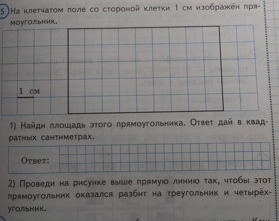 2) произвольно провести прямую линию через один угол прямоугольника и которая пересекает сторону прямоугольника. получится треугольник и четырехугольник(не прямоугольник!)