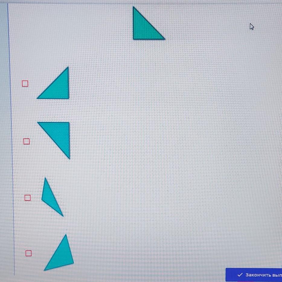 Конгруэнтные фигуры - это геометрические фигуры, переходящие друг вдруга при движении. По рисунку мы видим, что данный треугольник равен треугольникам 1, 2 и 4, а треугольнику 3 - нет.