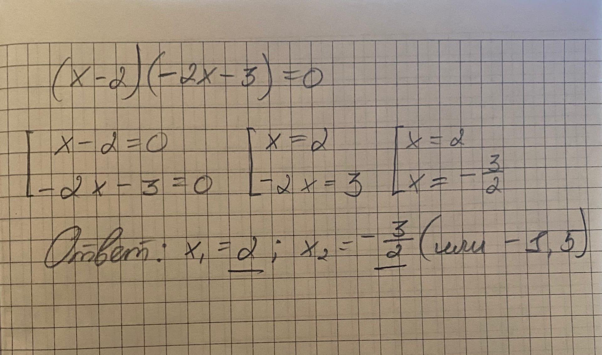 (х-2)=(-2x-3) =0 помогите пожалуйста