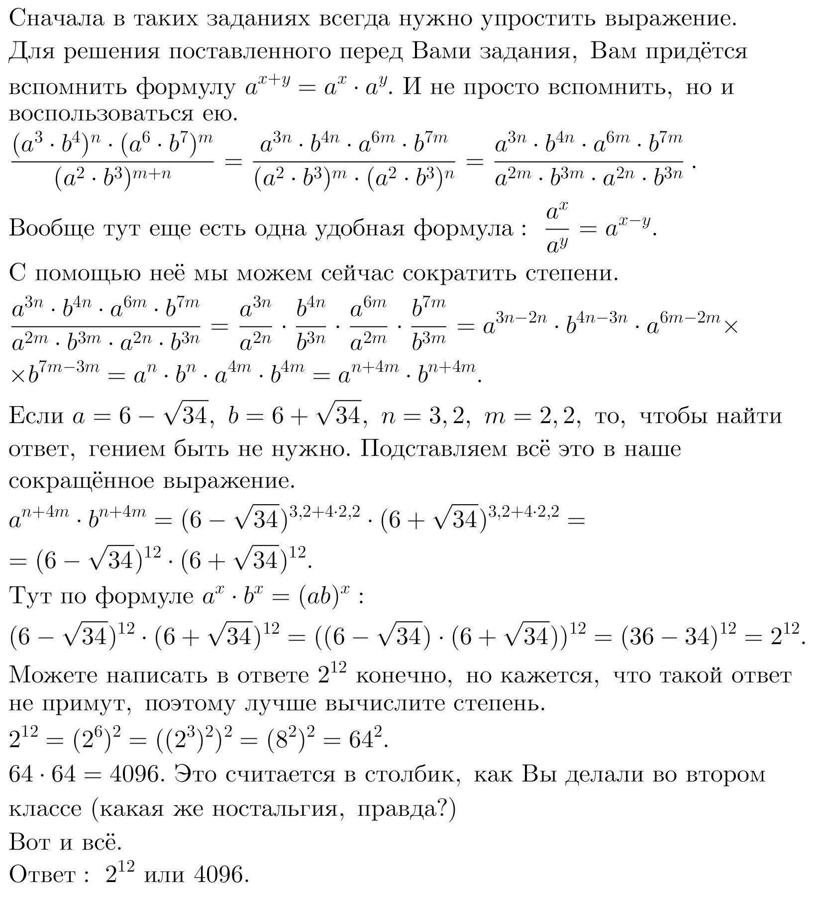 Кто может расписать подробно решение, чтобы можно было разобраться. Решения подобного выражения в инете не нашла.