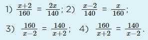 160/(х + 2) = 140/(х - 2) Верное уравнение 4).
