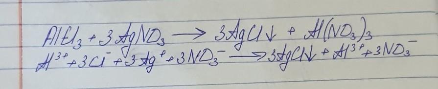 Хлорид алюминия и нитрат серебра - две соли, которые вступят в реакцию. В результате реакции ионы следующие: Al3+, Cl-, Ag+, NO3-.