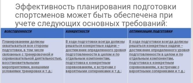 Составьте таблицу «Основные требования к планированию многолетней подготовки на четырехлетний олимпийский цикл».