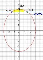 вот рисуем этот эллипс и прямую у = 2√3. в осях ох оу мы нарисовали график и видим все границы по х и у