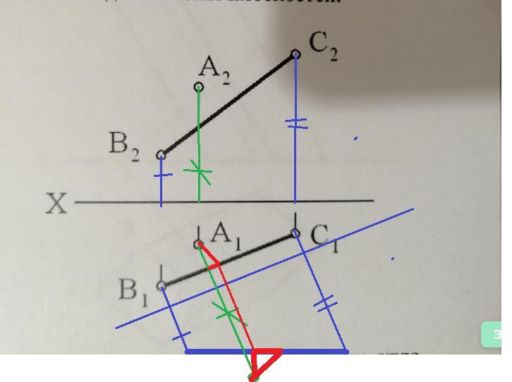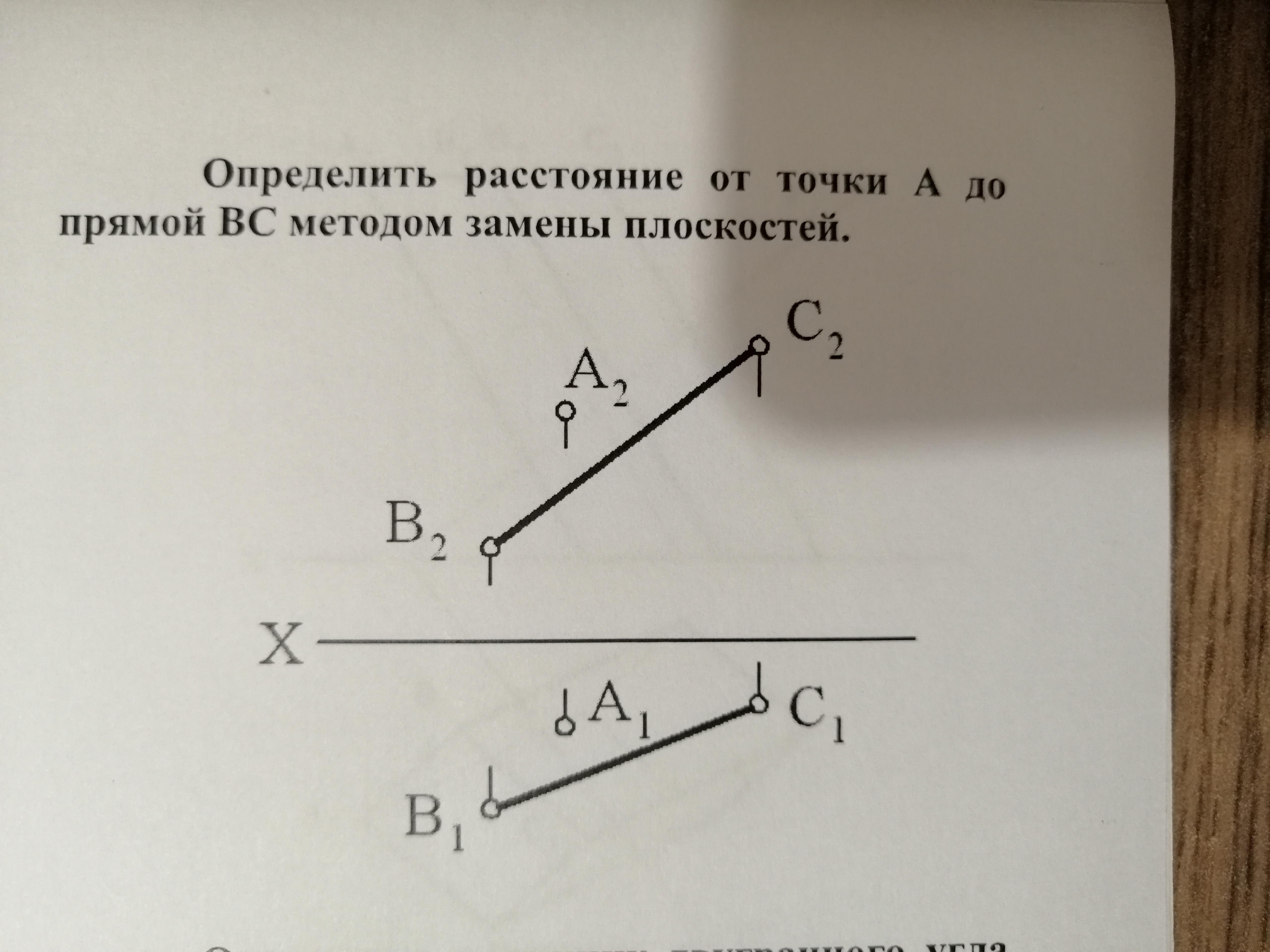 Определить расстояние от точки А прямой ВС методом замены плоскостей.