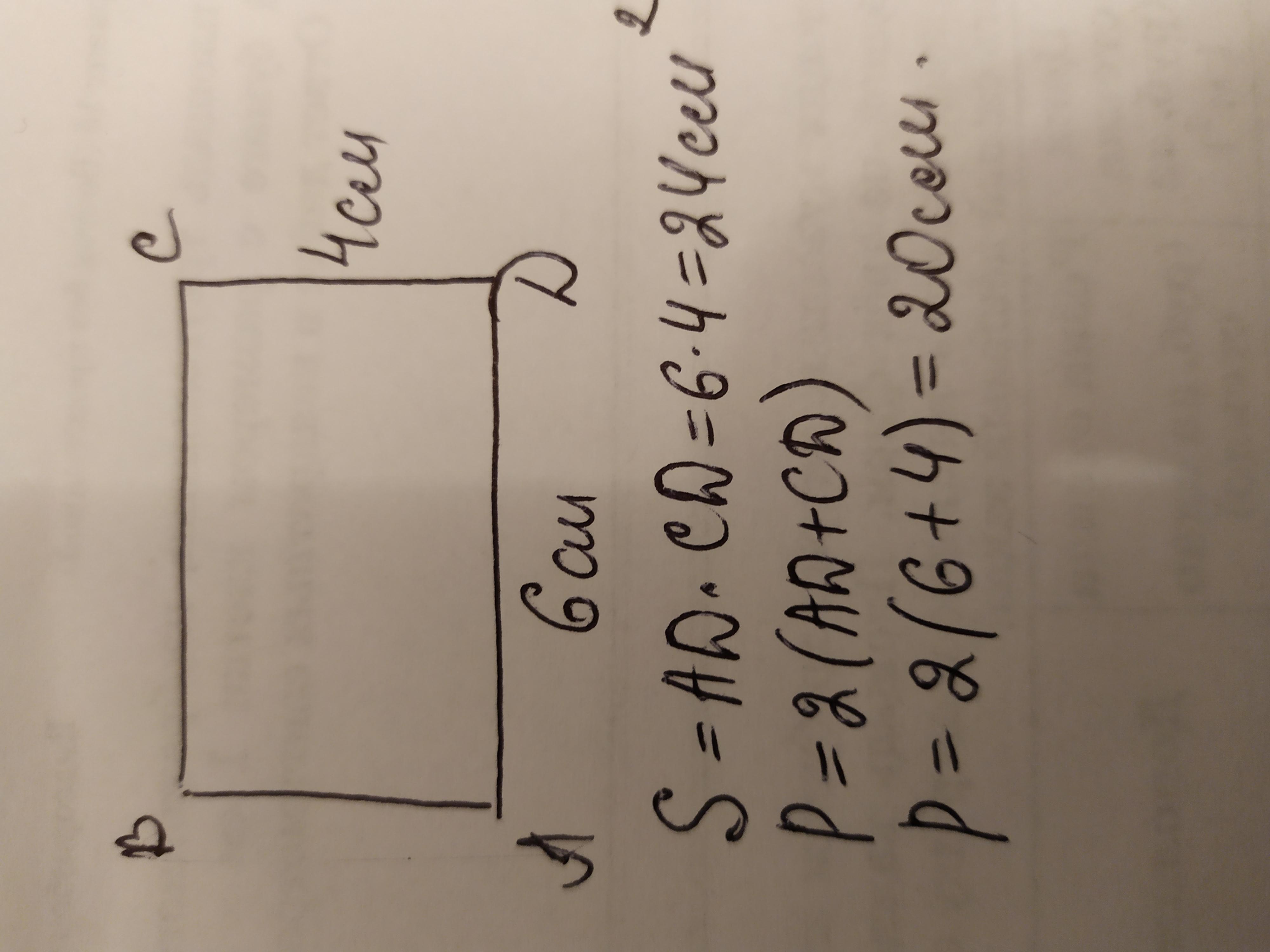 S= 6×4=24 см² Р = (6+4)×2=20 см