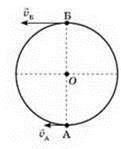 В некоторый момент времени мгновенные скорости движения точек А и Б колеса совпадают с направлением движения собственно колеса (см. Рисунок). Их модули соответственно равны vА = 3 м / с, vб = 6 м / с. Определите (в метрах в секунду) модуль скорости движения центра колеса (точки О) в данный момент.