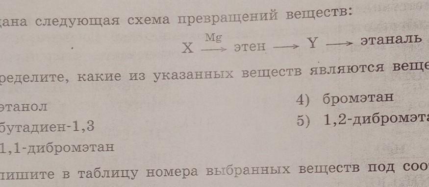 нужно выбрать вещества х и у