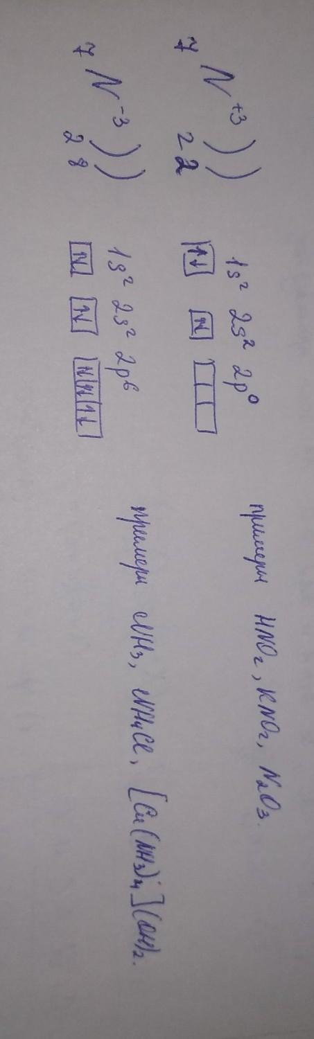 Составьте электронные и электронно-графические формулы атома азота в степенях -3, +3.Приведите примеры соединений азота в указанных степенях окисления..