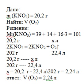 2) Сколько литров (н.у) можно получить при нагревании 20,2г нитрата калия?