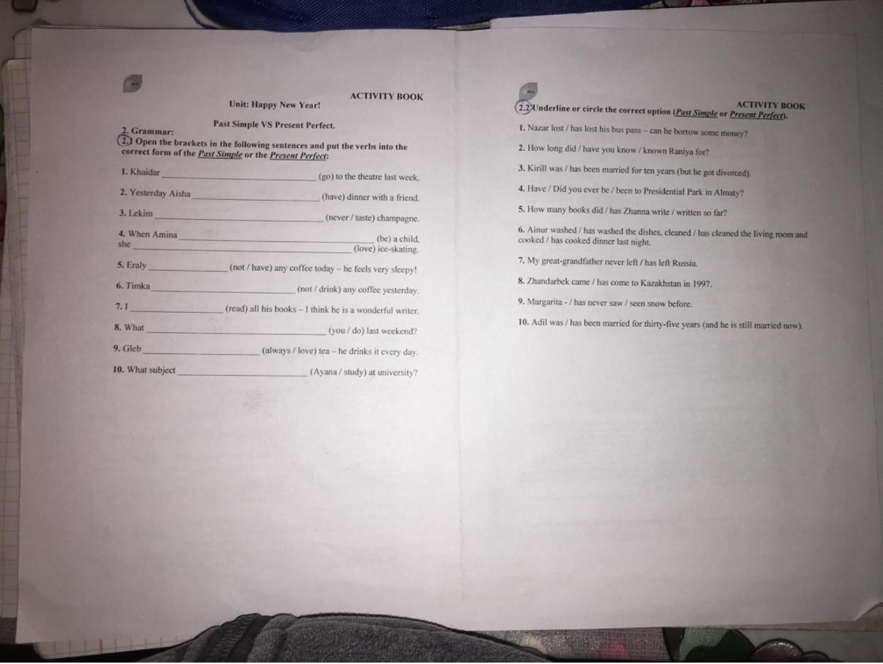 1 went 2 had 3 has never tasted 4 was, loved 5 hasn't had 6 didn't drink 7 have read 8 did you do 9 has always loved 10 did she study