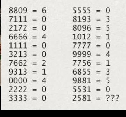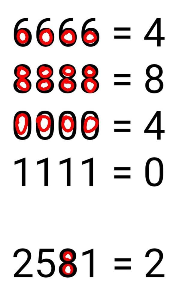 Я, вроде, видела такую задачку раньше. Суть в том, что число после знака "=" - это количество в числе кружочков, или как вернее выразиться...